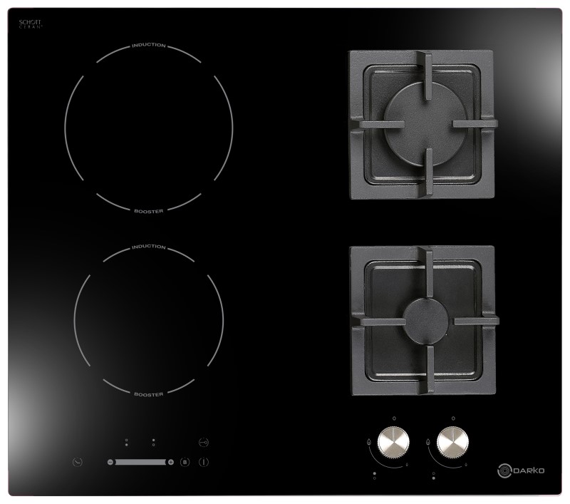 Plită încorporabilă combinată pe gaz+ inducție, suprafața din vitroceramică, <60cm>