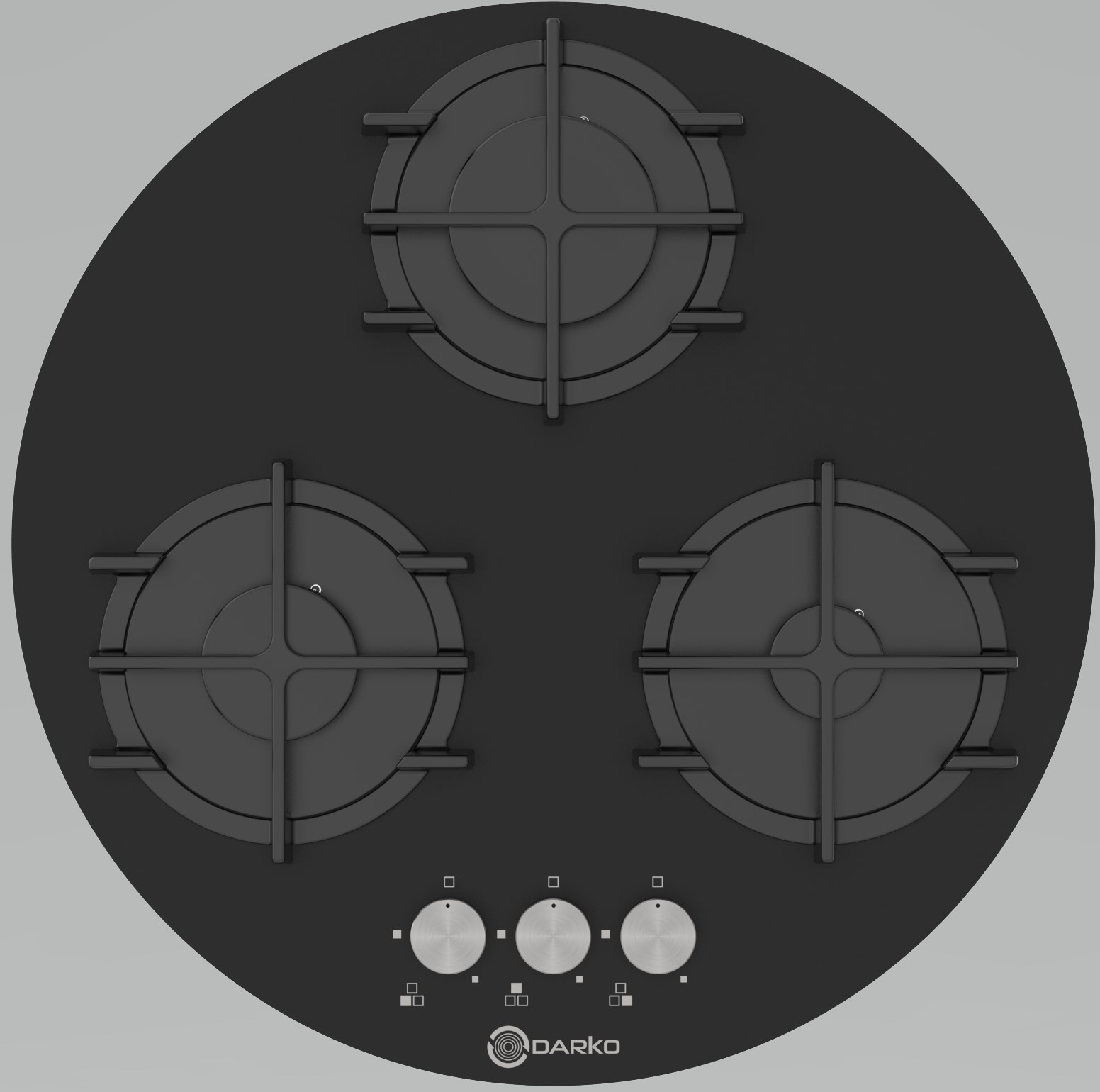 Plită încorporabilă pe gaz, suprafața din sticlă călită neagră , <52 cm>